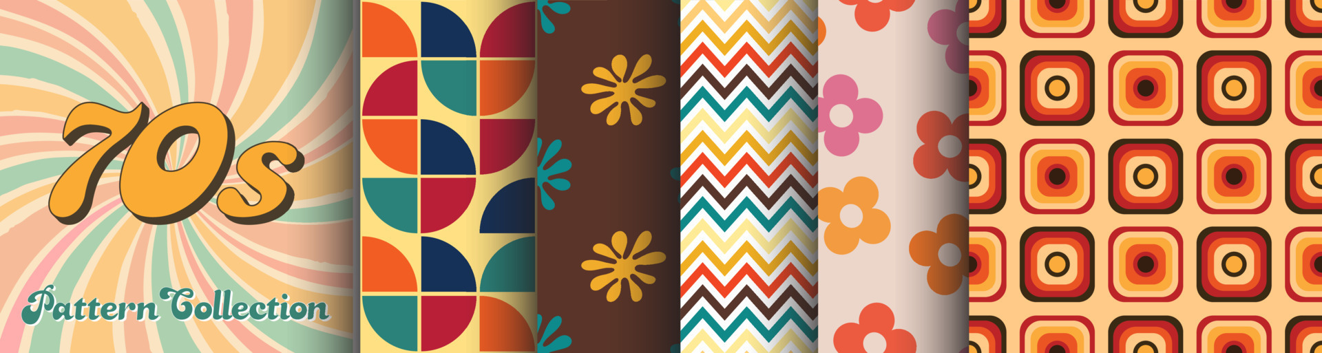 Collection Of Seamless Patterns In 70 S Style Boogie Decade Retro Graphics Vintage Set Of Fabrics For Apparel Fashion Designs 11193451 Vector Art At Vecteezy